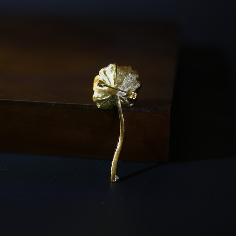 Drawing inspiration from the serene water gardens of the Orient and the flowing lines of Art Nouveau, this brooch captures the moment a lotus begins to bloom. The hand-clustered freshwater pearls are nestled within a textured golden leaf, mimicking the ethereal beauty of morning dew.