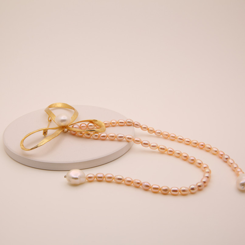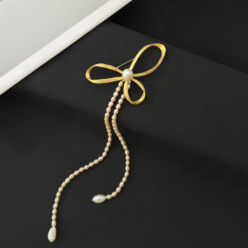 The defining feature of this brooch is its ingenious detachable pearl chains. Wear the brushed gold-tone bow on its own for a minimalist, chic daytime look on a blazer or knitwear. For an evening of high-glamour, simply attach the cascading freshwater pearl tassels to create a dramatic statement piece that moves with grace.